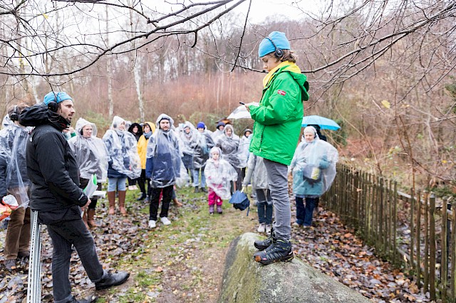 1. Live-Audio-Walk von 7 Kindern geleitet, in dem sich das Publikum (auch Kindern und Erwachsene aus der Stadt) auf die Spuren ihrer Alltagswege, ihrer Imaginationsräume und geheimen Orten begibt